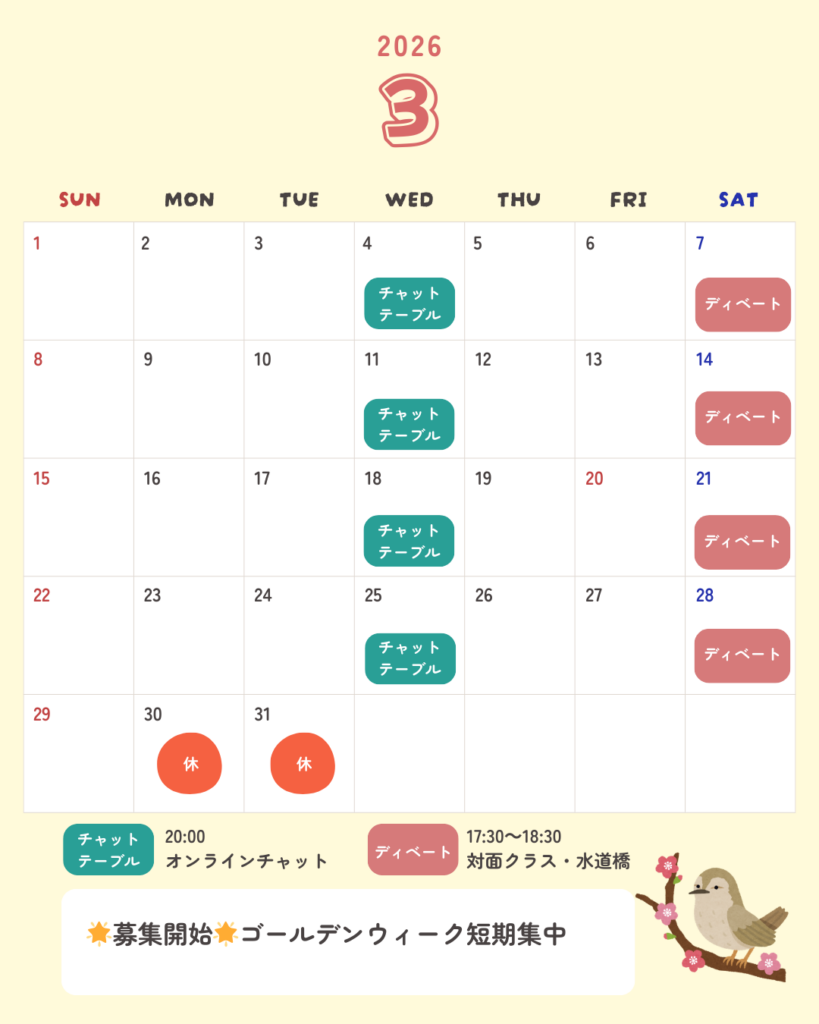 (オンライン/対面/週末ディベート)