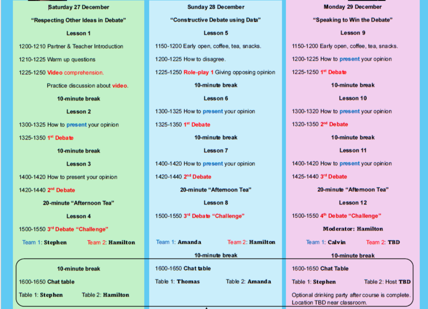毎週学習者には自由参加のチャットテーブルを開催しています。